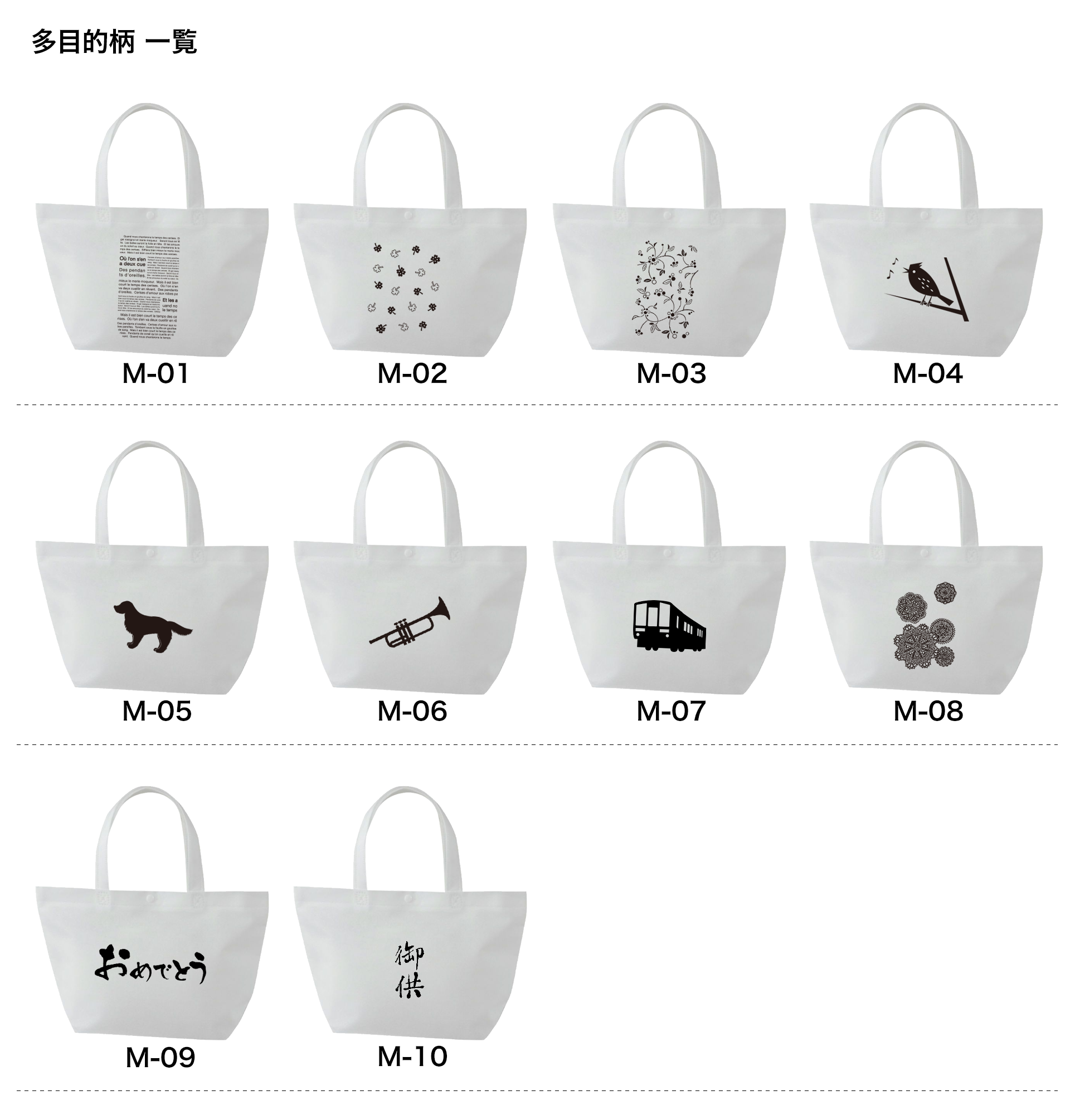 クリスマスやハロウィンなどの季節柄、和柄、花模様、カジュアル、シンプルなど100種類以上から選べる既成柄印刷。
