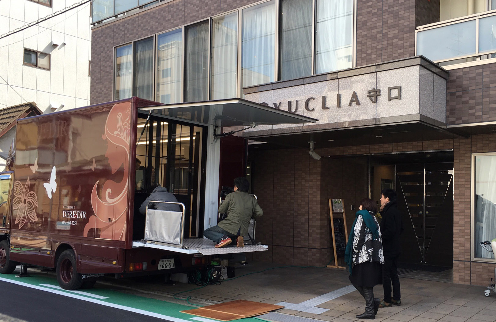 老人ホーム、病院などへの福祉訪問美容サービス。 施設まで移動美容室で訪問して、 サロンと同様のサービスを提供しています。