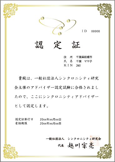 【2】A4認定証に表示されるお名前はカードサイズの認定証と同じお名前にて作成致します。また、地域は現在の会員登録住所となります。変更があった場合、再発行には2,500円の作成料がかかります。