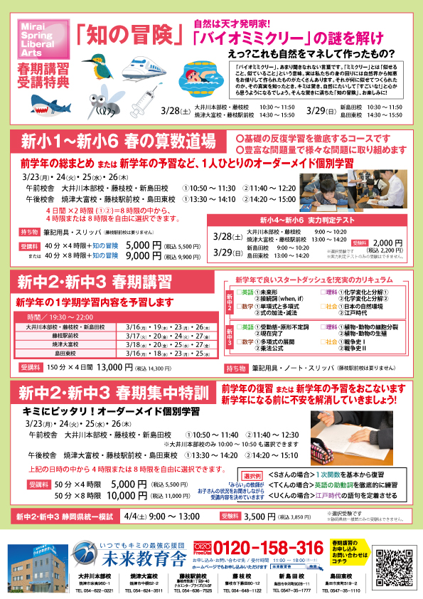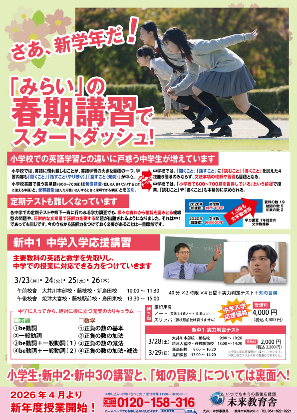 新中学1年生~新中学3年生 春期講習