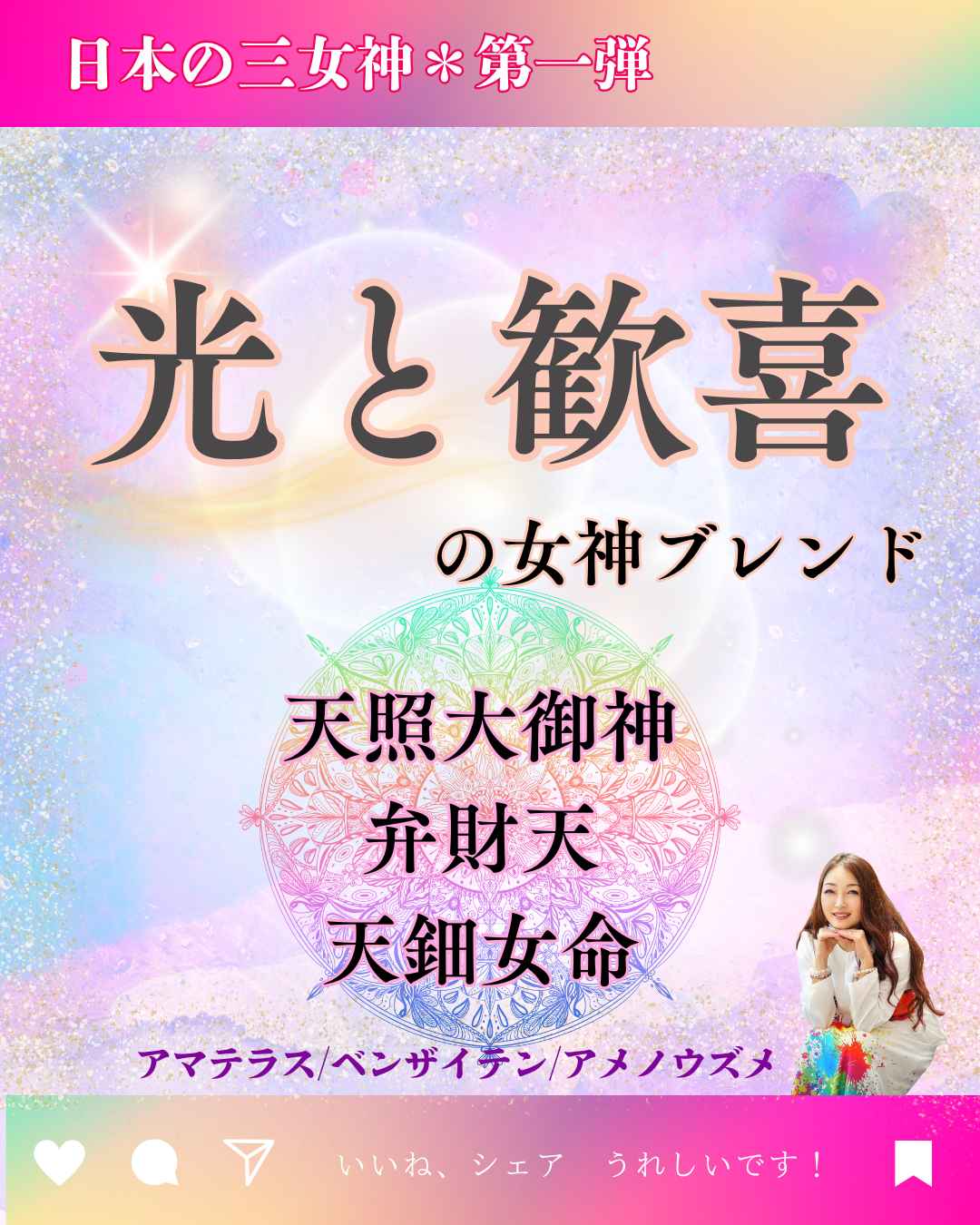 日本の女神も、世界の女神も、「愛」「調和」「歓喜」という<同じ光の源>から生まれています。