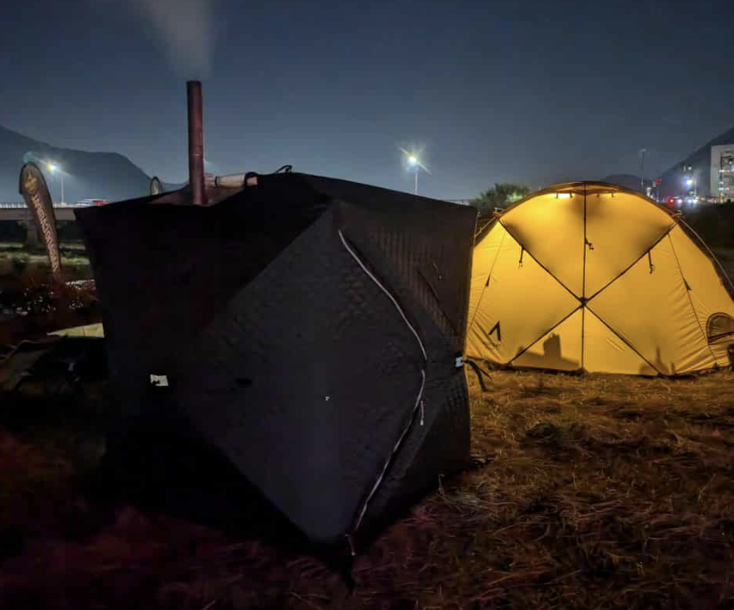 屋外にも暖かいナイトテントを設置!