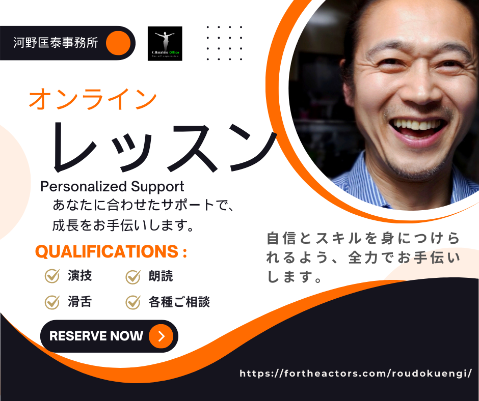 通常の稽古では味わえない 「生きたセリフのやり取り」 や 「間の深さ」 を、河野匡泰による丁寧な指導と、本格的な舞台環境で体験してみませんか?
