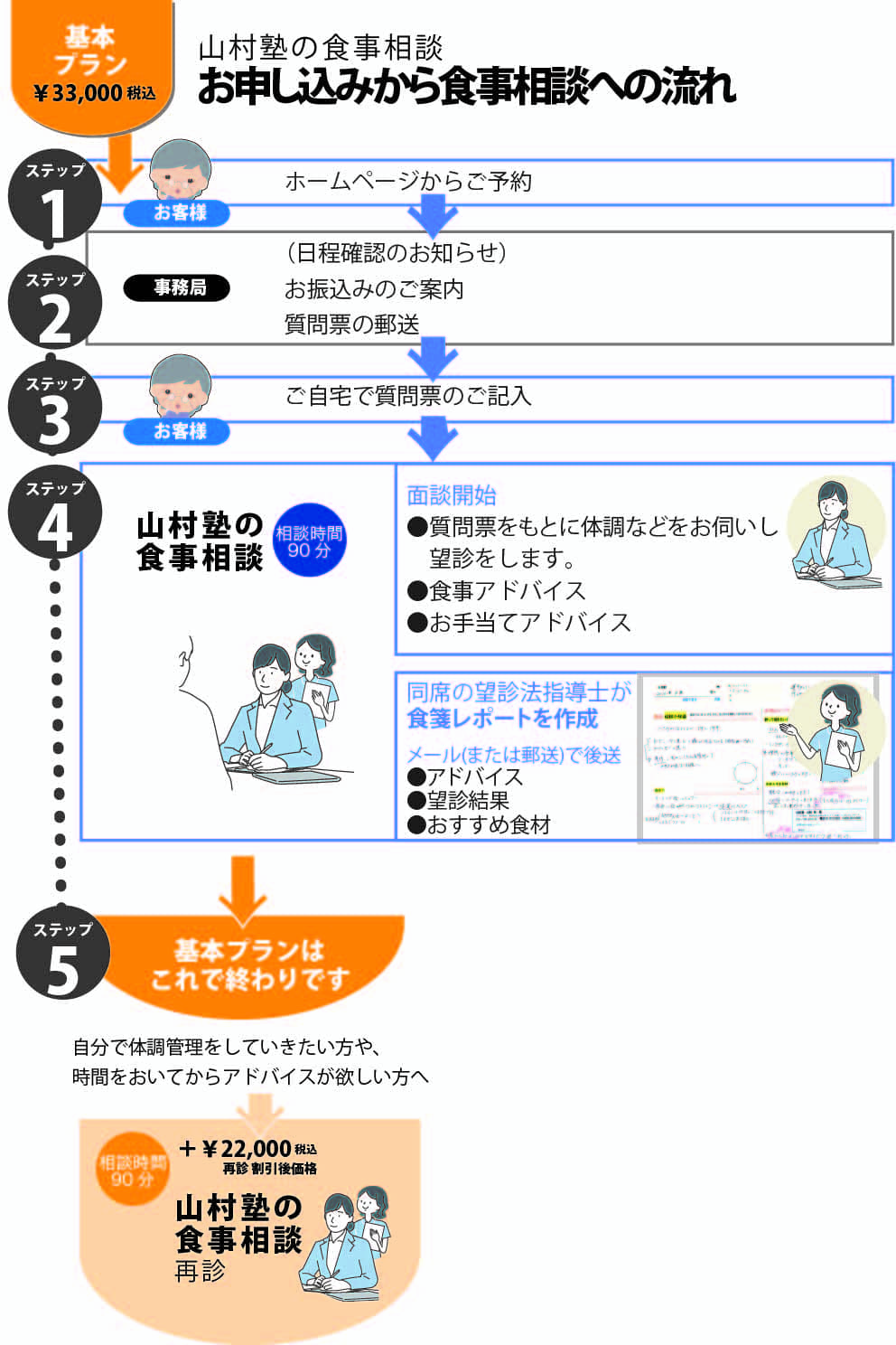 | 40代/女性 冷え性 | 今までの食習慣を変えるのは困難な中で、無理なく加えていける様にアドバイス下さいました。優しい表現で、きちんと伝えてもらった事が良かったです。 今回、はじめて食についていろいろ考える良い機会が持てました。食べる物が未来の自分を作っているのですね。気づかせてもらいました。 |