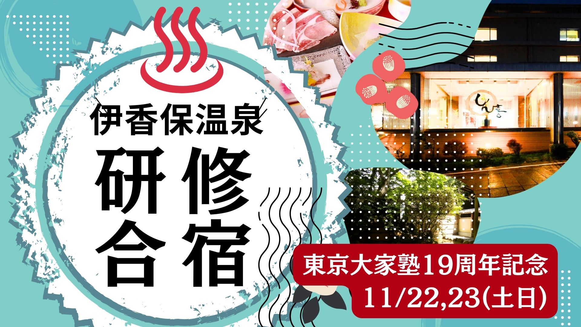 | タイムスケジュール | 土曜: 14:00〜17:00 旅館内会議室で研修 18:30〜夕食(宴会)/二次会(任意) 日曜: 8:00〜朝食〜チェックアウト 以降 自由行動 11:00〜築古戸建見学会(伊勢崎市) *任意 |