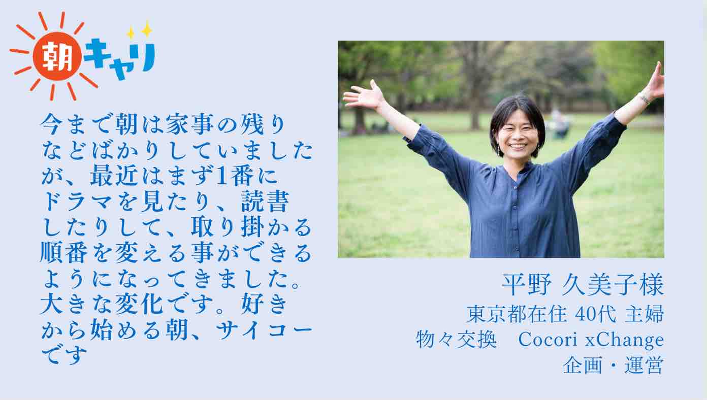 Q: 朝キャリに参加の場合、必ず朝活に参加し早起きすることが条件でしょうか。子育て中で朝の時間はバタバタで、朝早く起きられたり起きられなかったりするので心配です