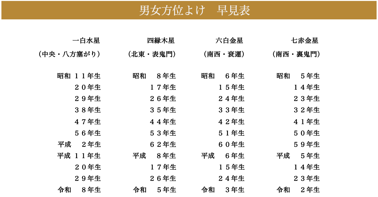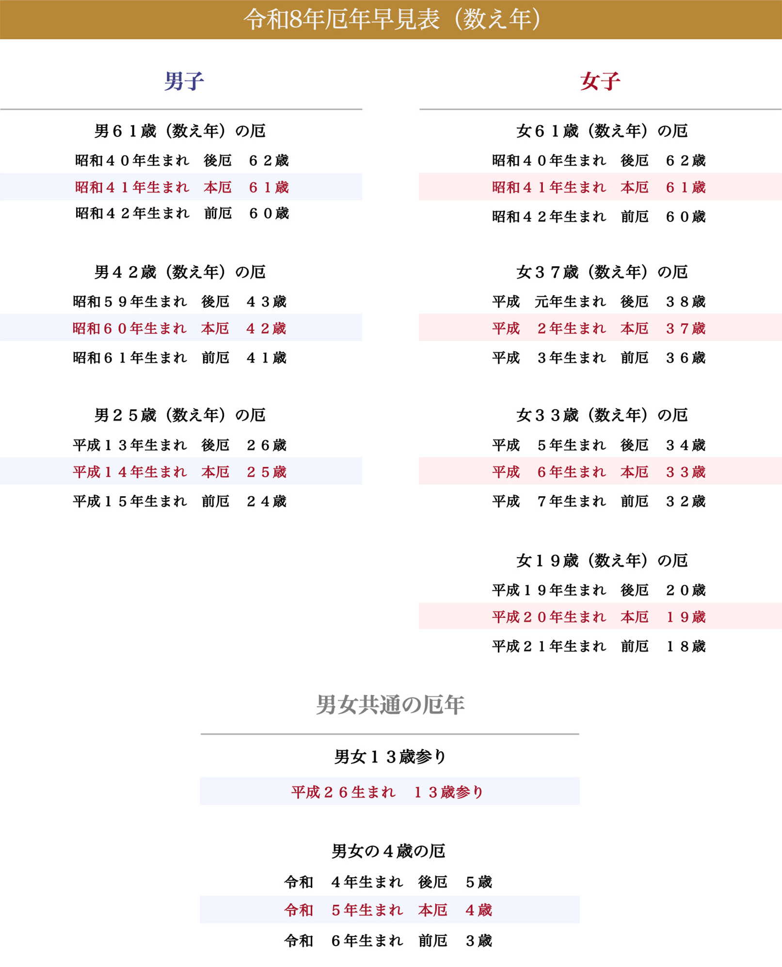 厄年早見表