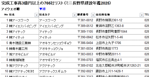 ①ミニ長野県建設年鑑(完工高3億円以上の県内建設業者約800社の企業データ)