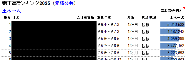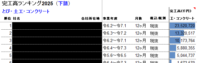 ・本集計に採用した値は、2025年7月から9月までの期間に当社が長野県建設部建設政策課閲覧室ならびに関東地方整備局で取材した時点で、事業者が提出している最新の建設業許可関係書類の数値を採用しています。