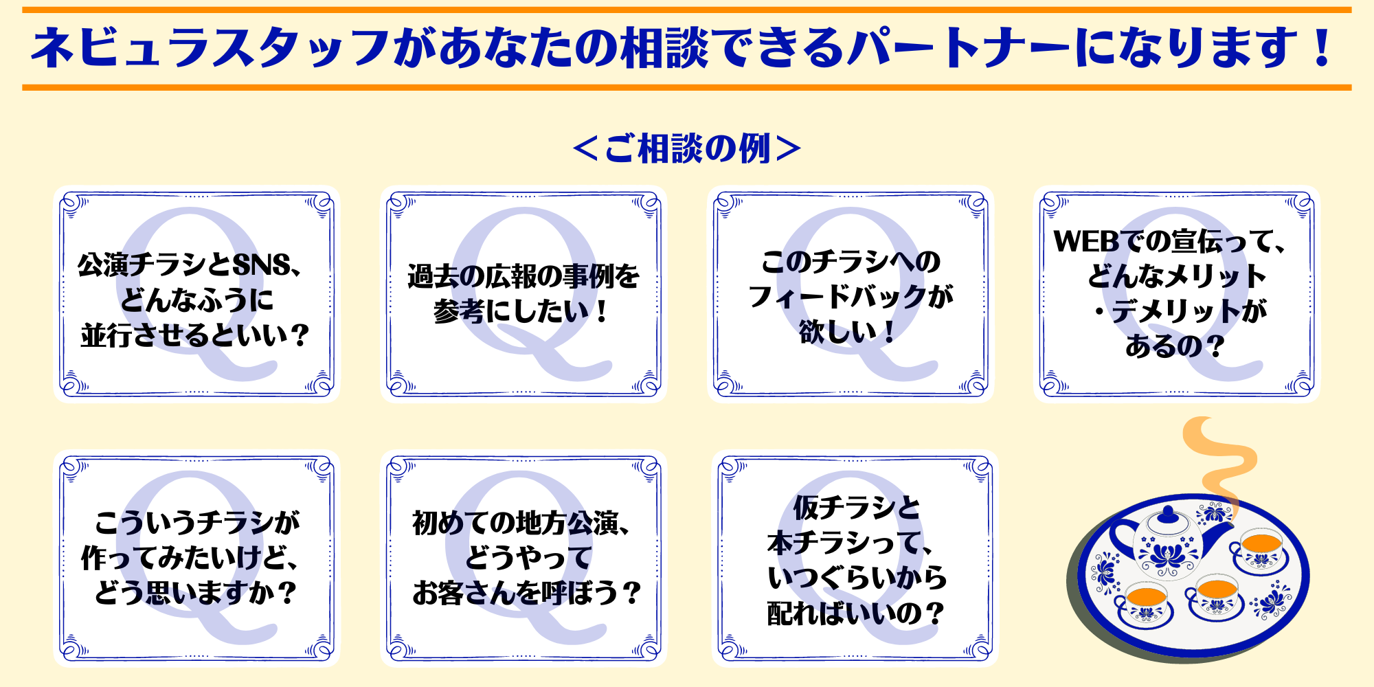 さまざまな公演・団体と並走してきたネビュラスタッフと一度お話ししてみませんか?